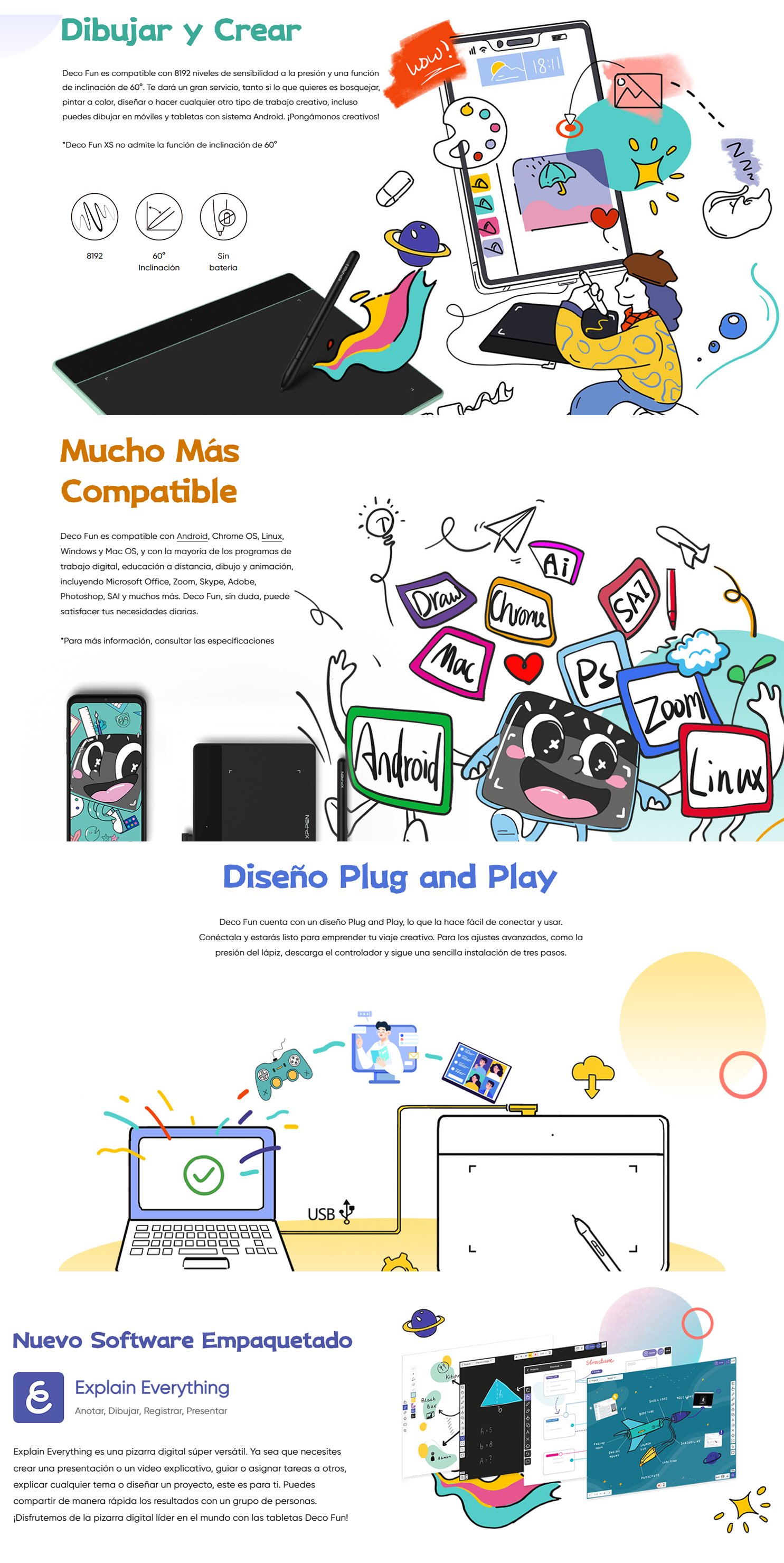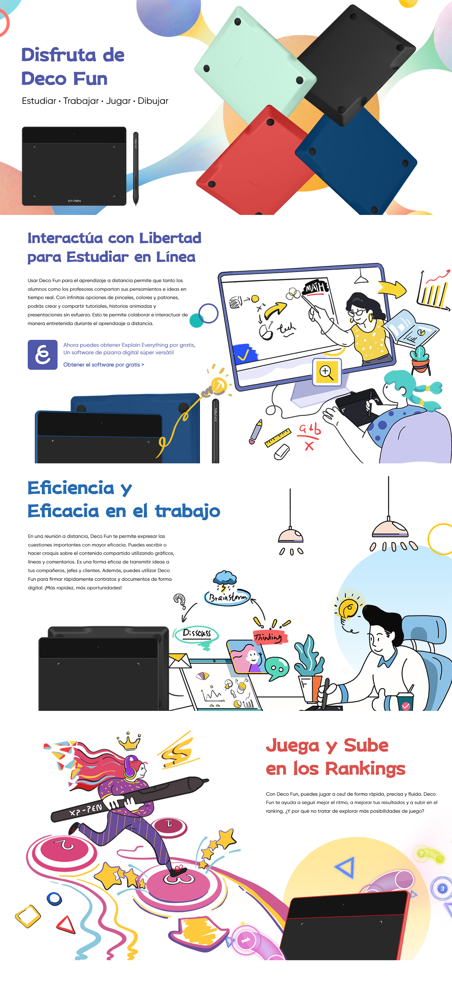 Usar Deco Fun para el aprendizaje a distancia permite que tanto los alumnos como los profesores compartan sus pensamientos e ideas en tiempo real. Con infinitas opciones de pinceles, colores y patrones, podrás crear y compartir tutoriales, historias animadas y presentaciones sin esfuerzo. Esto te permite colaborar e interactuar de manera entretenida durante el aprendizaje a distancia.