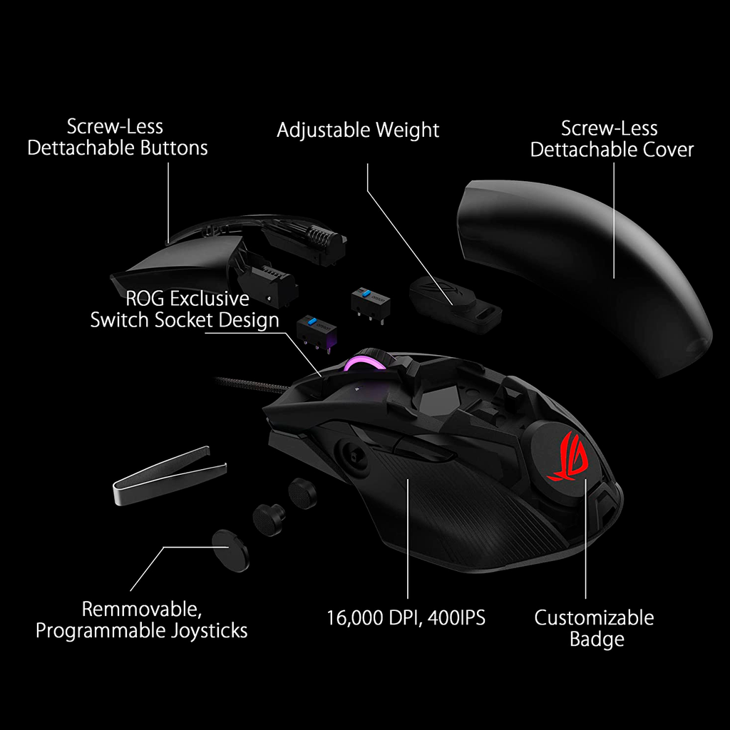 El ASUS ROG Chakram Core es un mouse gaming con 16,000 DPI, diseño personalizable y tecnología Aura Sync RGB para un rendimiento y estilo incomparables.