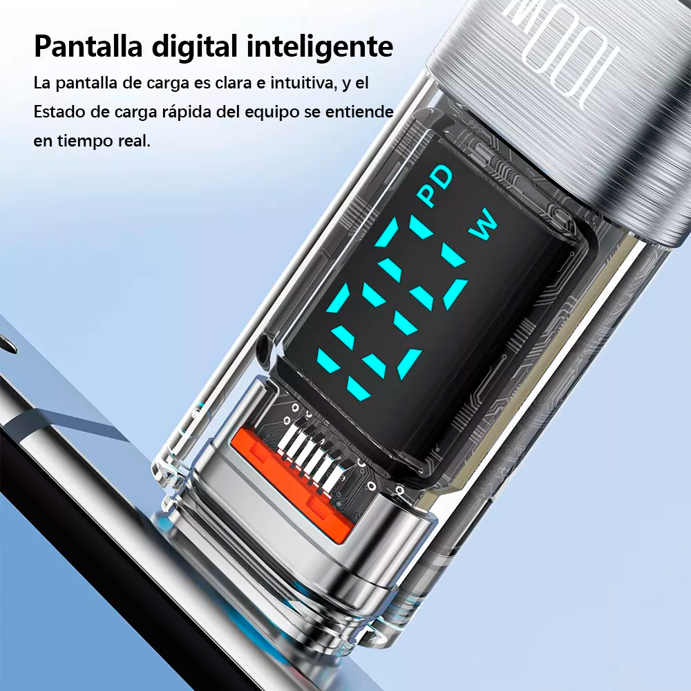 Cable de Carga TOOCKI Con Pantalla, USB-C A USB-C TOOCKI 100W - PD100/ TXCTT1-Blue