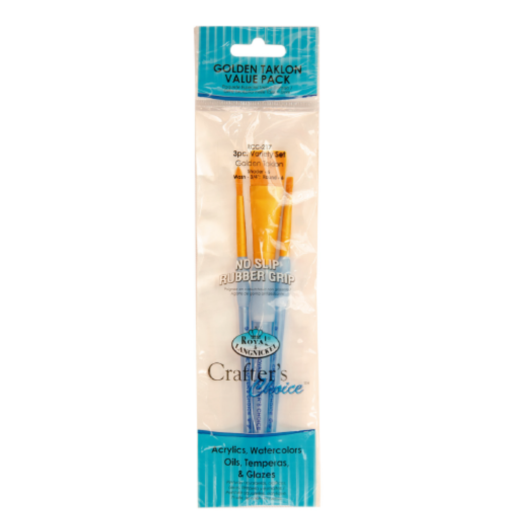 Bolsa Con 3 Pinceles Planos Cerdas De Taklon Dorado - Royal Langnickel