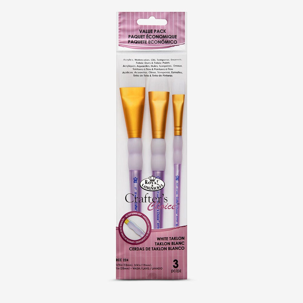 Bolsa Con 3 Pinceles Blancos Planos Cerdas De Taklon Dorado - Royal Langnickel