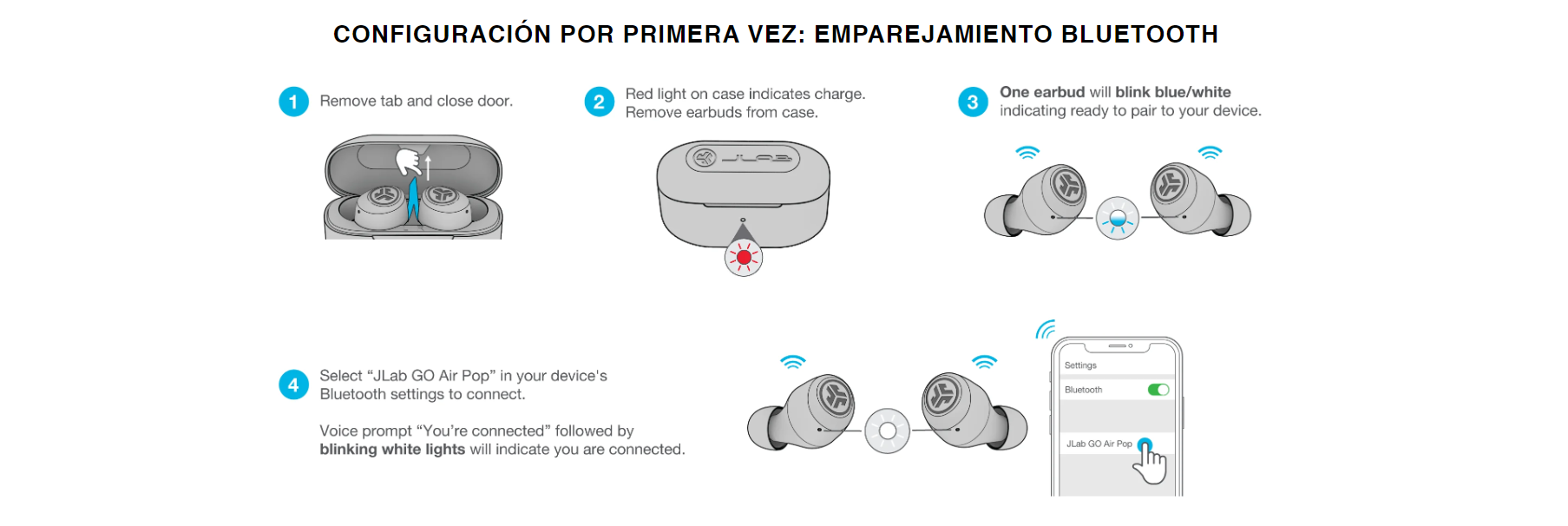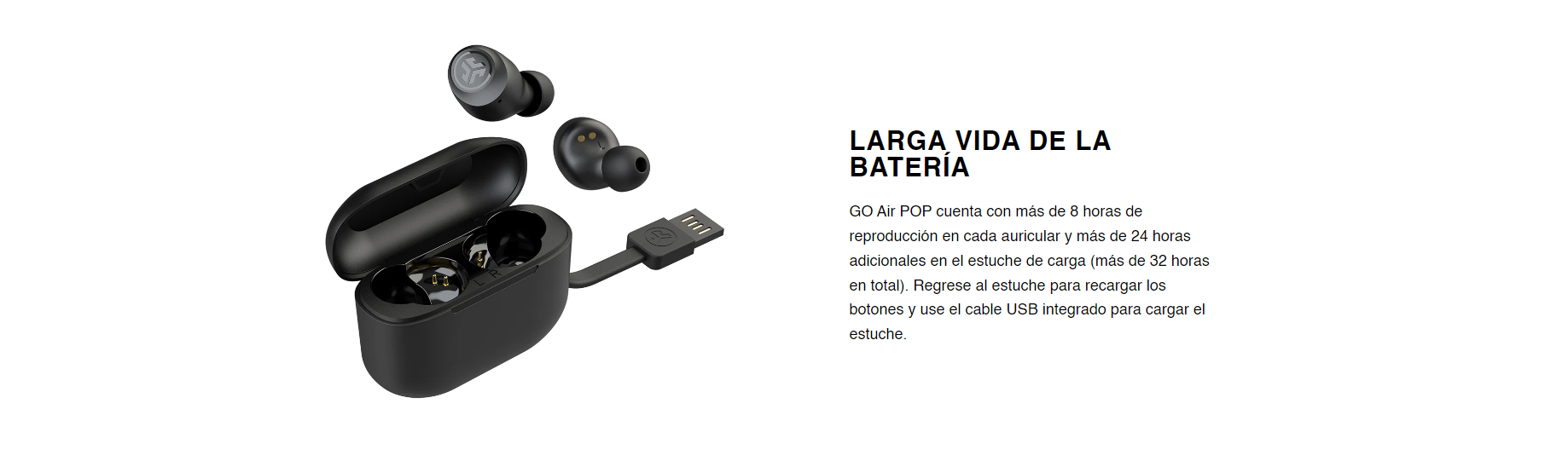 Audífonos JLAB GO AIR POP TW Color Negro 8hrs + 24hrs case, Bluetooth 5.1, IPX4 - EBGAIRPOPRBLK124