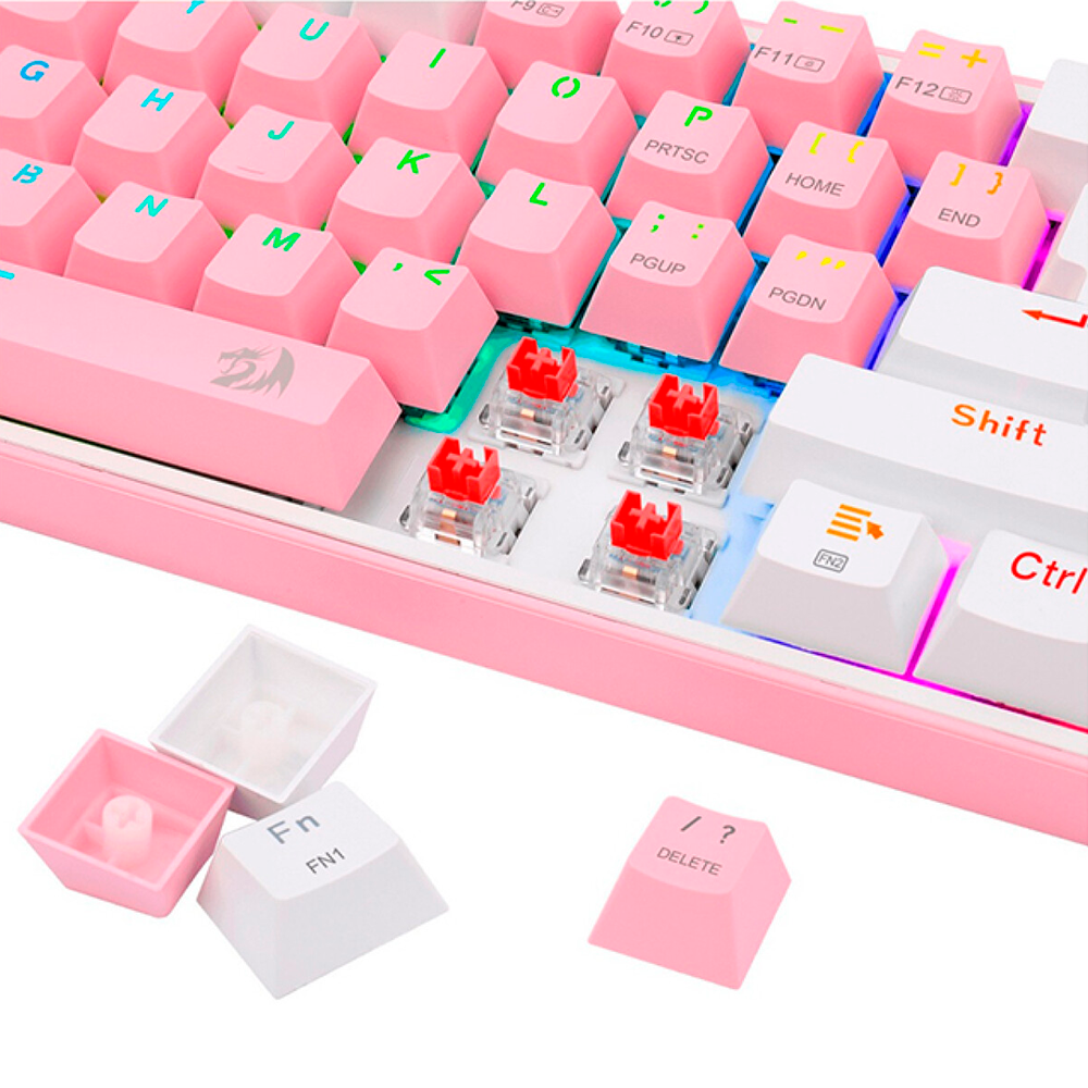 Teclado Mecánico Gaming Redragon FIZZ PRO 60%, Inalámbrico, Rosa/Blanco, Switch RED - USB TIPO-C, 2.4Ghz, Bluetooth- K616-RGB PW
