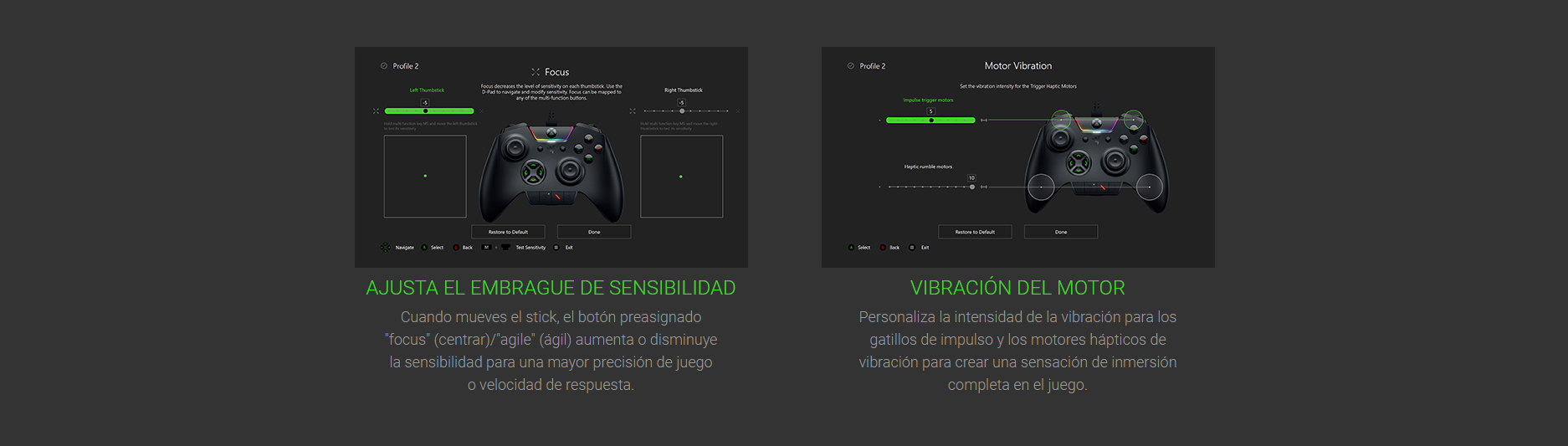 Consigue la sensación y el ajuste perfectos con sticks y dos crucetas intercambiables. Alterna entre sticks optimizados de diferentes alturas y formas y cambia rápidamente entre el diseño inclinable o individual de los botones de la cruceta para la mejor comodidad y el mejor juego.