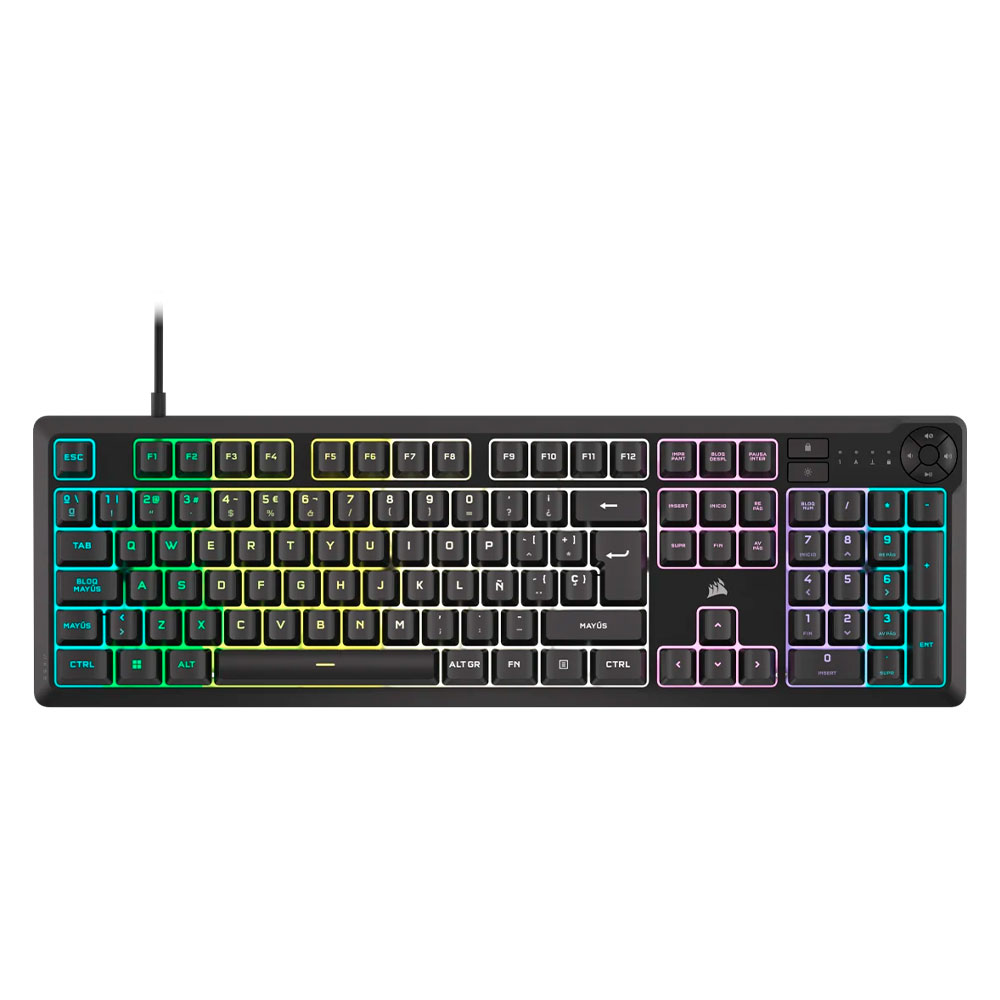 El teclado para juegos CORSAIR K55 CORE le sitúa en el camino de la victoria, con retroiluminación RGB de 10 zonas totalmente personalizable y botones de control multimedia específicos.